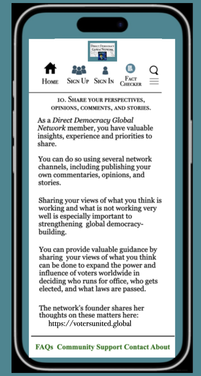 By joining the Direct Democracy Global Network when it becomes fully operational, they can apply lessons they have been learning for centuries: Voters hold the keys to the future. Yes, the best is yet to come!